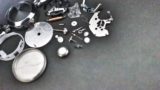 その前に時計のケースのラグの穴の中が詰まっているので、それを取り除くのが先決です。考えた末に割ピン抜きのピンを外す棒で外してみようと思いました。0.8ミリの太さの棒をケースのラグの穴に入れてこづちで叩いたところ、少し動いた感触があったのでさらに強く叩いてみました。
