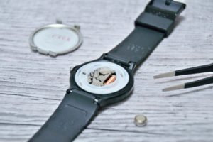 それで1分以上正常なパルスで動いていれば、時計は復活して動き続けます。しかし数秒に1回くらいいイーグル発信が起きる場合は残念ながら電池寿命は1年から1年半になってしまいます。それでも動かない時には、裏ブタ側から見える歯車の真に注油します。中にはこれで動き出す時計もあります。